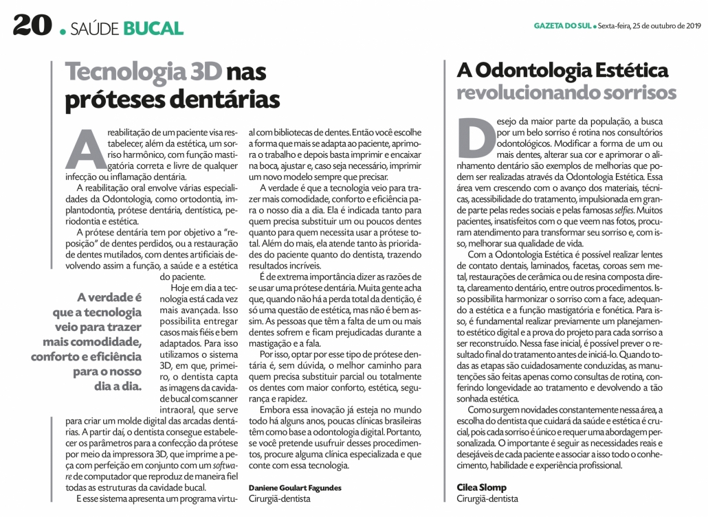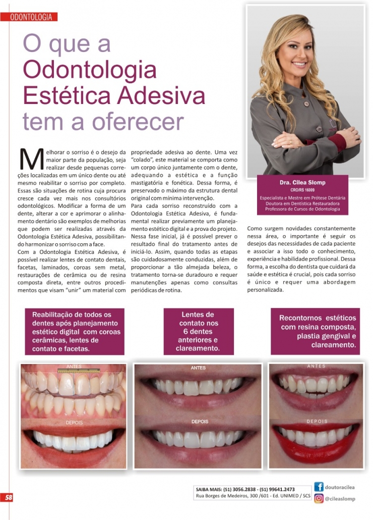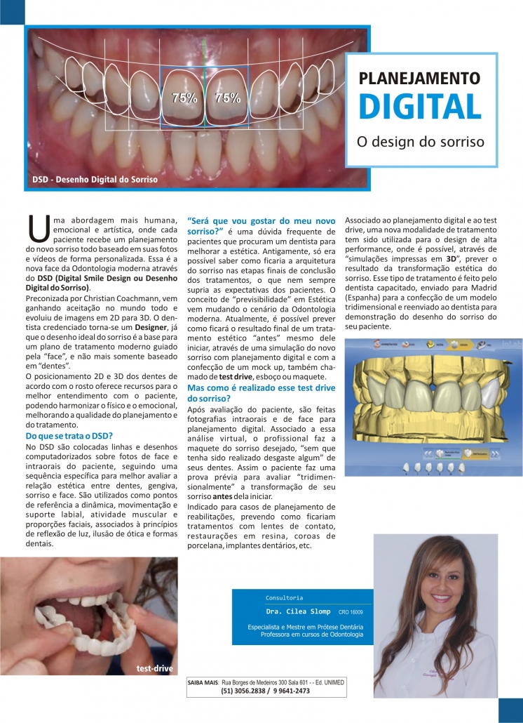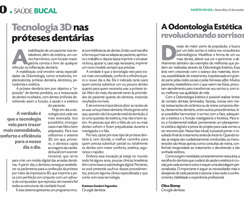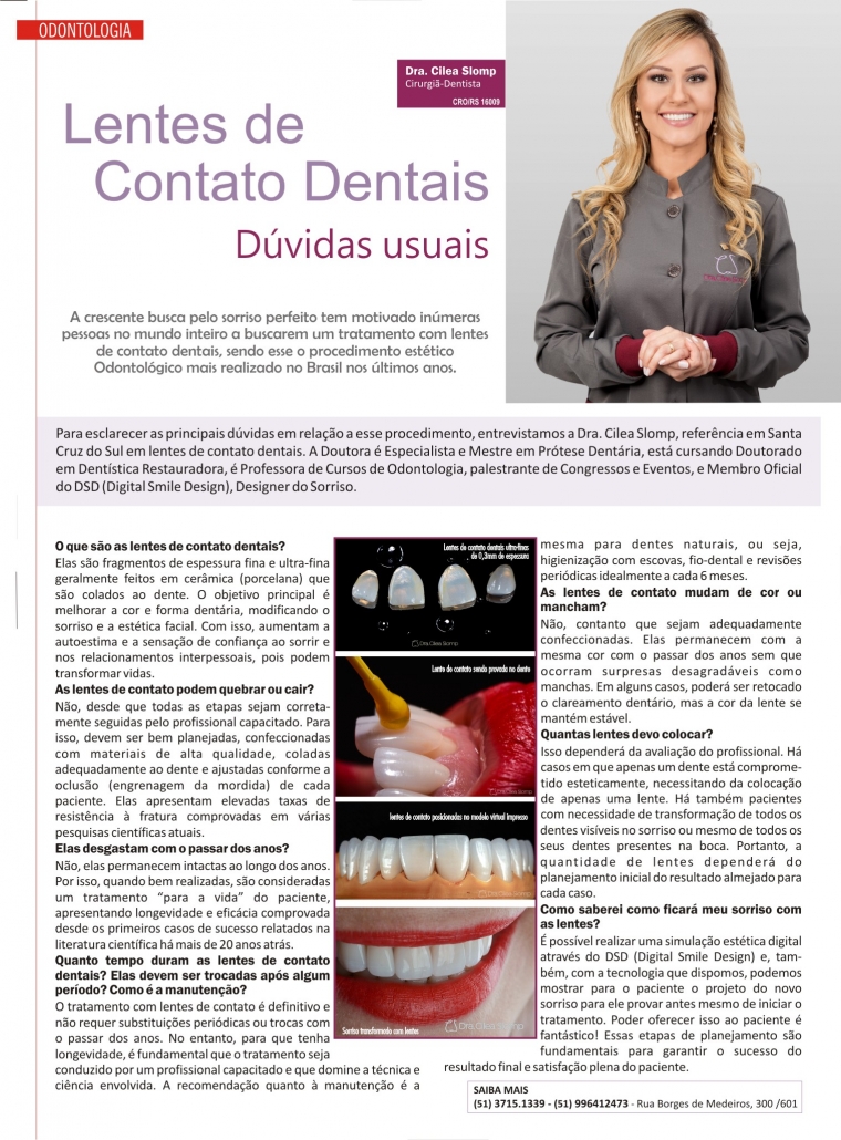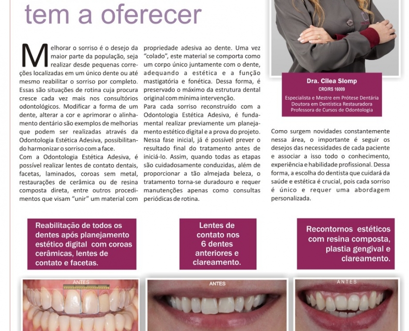 Ao longo dos seus 15 de profissão, a Dra. Cilea tem escrito constantemente para revistas e jornais. Confira algumas matérias sobre os mais diversos assuntos da Odontologia!