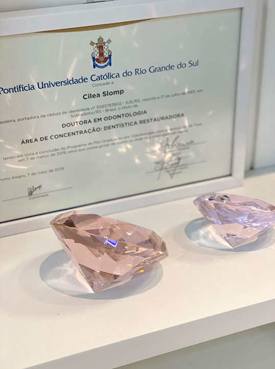 “Ontem foi o dia de revisão do sorriso com a melhor dentista desse mundo. Além de linda, dedicada e minha amiga, a Dra. Cilea Slomp é doutora em dentística restauradora. Confio e recomendo! Obrigada por cuidar tão bem de mim sempre.”